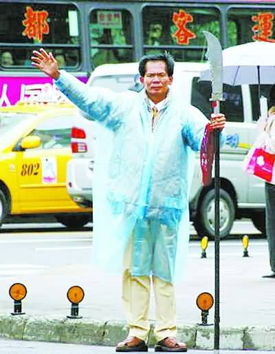 2008年,柯賜海拿著關公刀登記參加2008年臺灣地區領導人選舉,一時成為島內輿論的焦點。資料圖