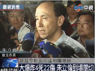 大爆炸4死22傷,新北市長朱立倫到場關切。圖片來源:臺灣“今日新聞網”
