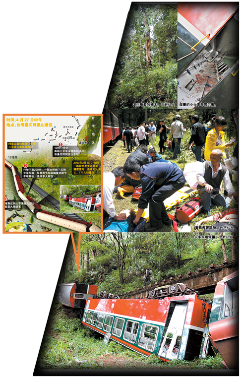昨日中午,一列臺灣阿里山森林小火車突然翻車,造成大陸游客至少有5人遇難、百余人受傷。造成這起事故的原因頗為離奇:一棵大樹的一根粗大樹枝突然斷裂,重重砸在列車車廂上。