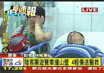 根據屏東警方調查,此一大陸旅行團來自上海,今日下午前往臺東時,在上述路段發生擦撞山壁的車禍,車禍發生原因,正由警方調查中。