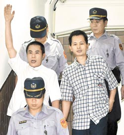 判死被告不滿。陸正案更11審宣判,被告邱和順(左)、林坤明步出法院時高喊司法不公,他們要再上訴。圖片來源:臺灣《中國時報》