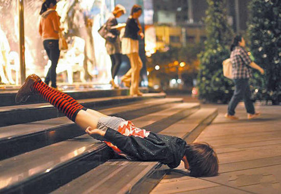 仆街少女的“怪異”行為藝術。圖片來源:臺灣“今日新聞網(wǎng)”