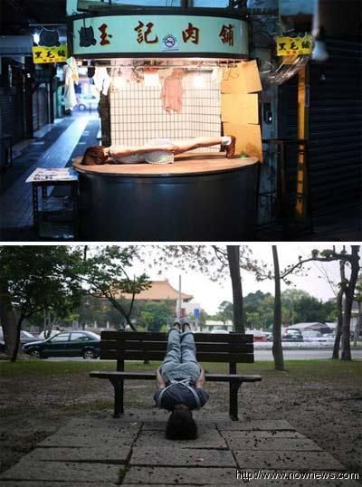 自稱“仆街少女”的25歲“禁欲”和28歲Karren的共同愛好是攝影。她們分別在臺中和臺北各景點用臉朝下趴著全身打直倒頭栽的“仆街”姿勢,拍下一系列照片。