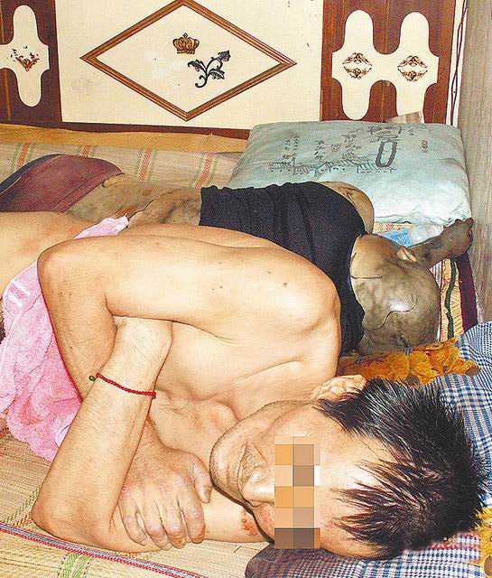 前天中午,警方獲報到嘉義縣六腳鄉一間三合院內,發現一名裸男意識不清地與一具女尸躺在床上,現場奇臭無比,趕緊將男子送醫。檢警勘驗發現現場遺有糞便、無藥瓶,有燒剩灰燼,死者頭發掉落一地,右眼浮腫、左耳撕裂傷,尸體浮腫發黑,推測死亡時間3到4天。