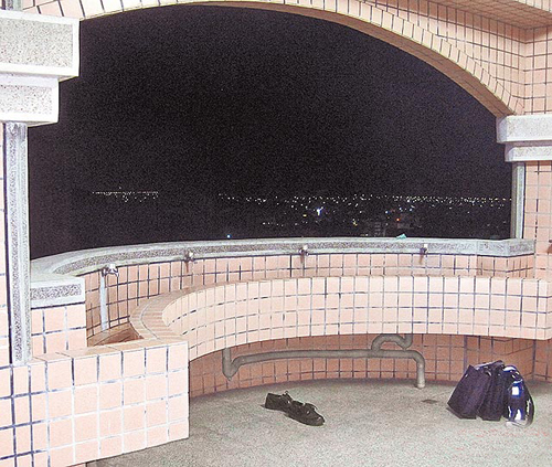 警方在實習工廠6樓洗手臺前,發現孫男的書包與鞋子。圖片來源:臺灣媒體
