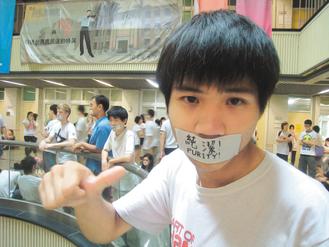 臺灣教育主管部門辦性別平等教育公聽會,現場許多學生口貼“純潔”字樣的膠布,抗議開放的性教育。圖片來源:臺灣《聯合報》