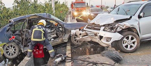 中國(guó)臺(tái)灣網(wǎng)2月14日消息 據(jù)臺(tái)灣《蘋果日?qǐng)?bào)》報(bào)道,嘉義縣鹿草鄉(xiāng)昨下午發(fā)生一起連環(huán)車禍,一輛載有3人的轎車,行經(jīng)嘉義縣公路時(shí),一輛摩托車突然橫越馬路,轎車閃避不及,擦撞機(jī)車后,車身失控滑行50米,遭對(duì)向車道休旅車側(cè)撞,導(dǎo)致車體扭曲變形,釀成2死2傷。
