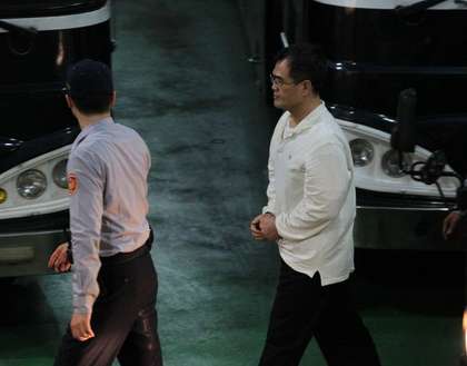 林益世由法警押解到臺北地方法院。(圖片來自臺媒)