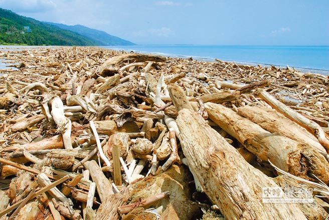 大量漂流木堆積臺(tái)東海岸,猶如森林遺場(chǎng)。(圖片來(lái)自臺(tái)媒)