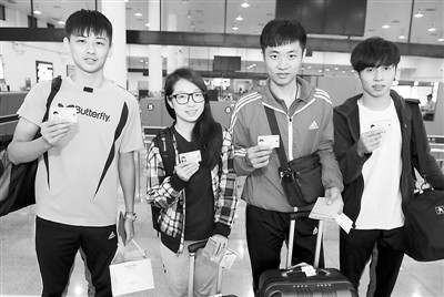 9月21日起,大陸全面啟用電子臺胞證?h級以上公安機關開始受理申請,同時停止簽發本式臺胞證。各地公安機關可為在大陸的臺灣居民補發、換發5年有效卡式臺胞證。仍然有效的本式臺胞證可以繼續使用,無須辦理簽注。此外,設有辦證機構的口岸將繼續為未持有效臺胞證直抵口岸的臺灣居民提供辦理一次性有效臺胞證服務。全面實行電子臺胞證后,臺灣居民來往大陸將更加便利。圖為當日在廈金航線廈門五通碼頭,來自臺北的幾位青年學生展示剛剛換發的電子臺胞證。 新華社記者 姜克紅攝