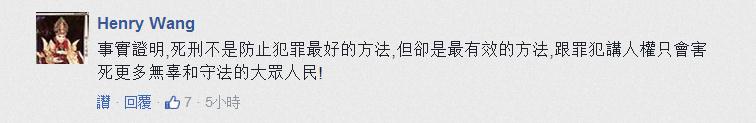 “事實證明,死刑不是防止犯罪最好的方法,但卻是最有效的方法,跟罪犯講人權只會害死更多無辜和守法的大眾人民!”