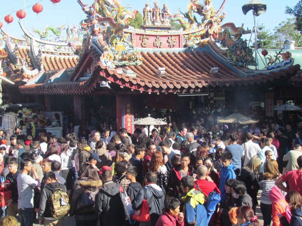紫南宮大年初一發(fā)"錢母",信眾擠滿了廟埕廣場。(圖片來源:臺灣《聯(lián)合報》)