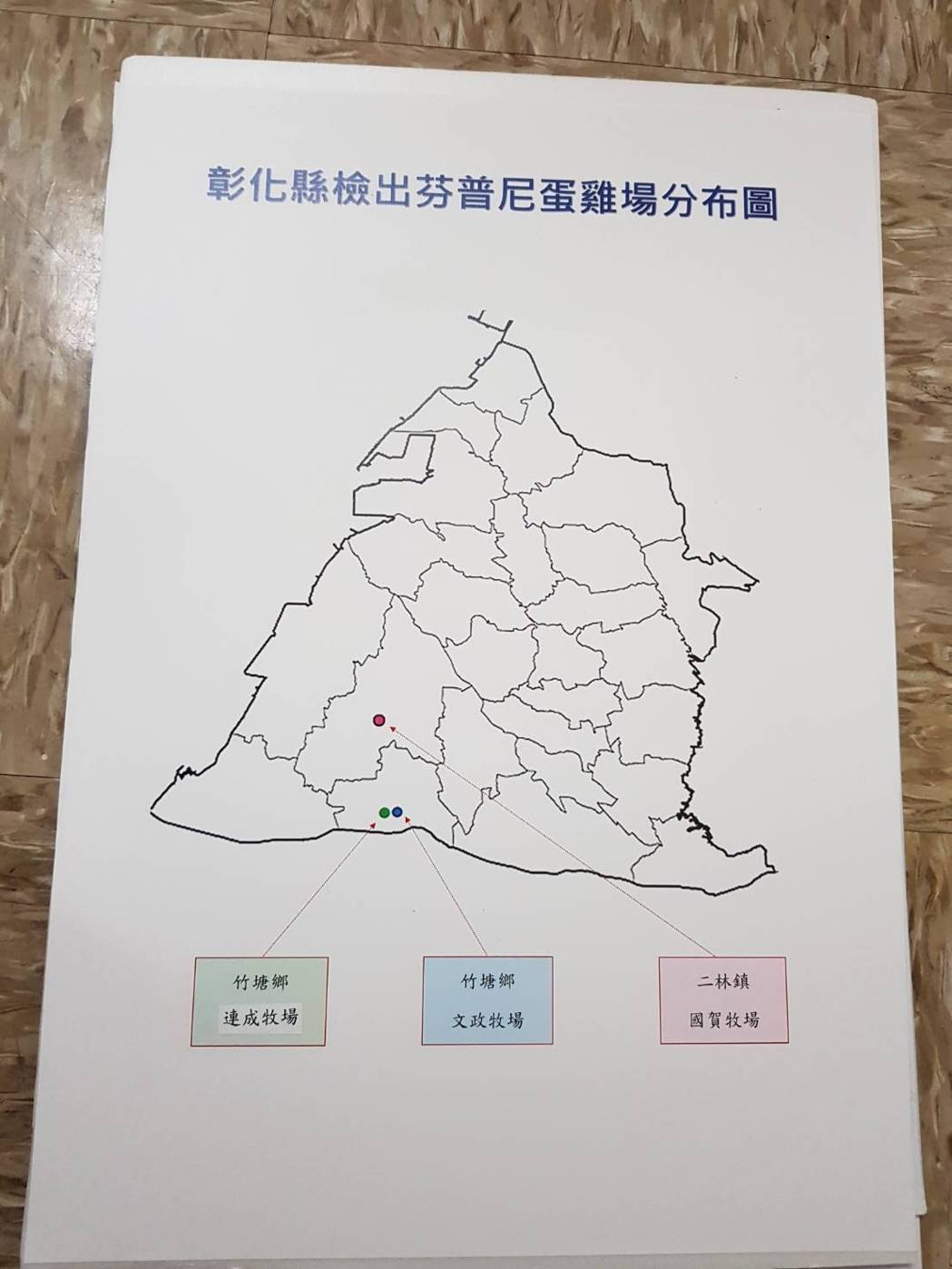 “農委會”副主委陳吉仲表示,歐洲與韓國都發生了“芬普尼雞蛋污染”事件,臺“行政院”與“食安辦”要求各單位進行畜牧場以及上市雞蛋的抽驗。同時,“農委會防檢局”也同步作芬普尼檢驗,前天在45件樣本中已確認有3家牧場驗出芬普尼,且這3家蛋雞場都集中在彰化,相關部門第一時間已進行移動管制。