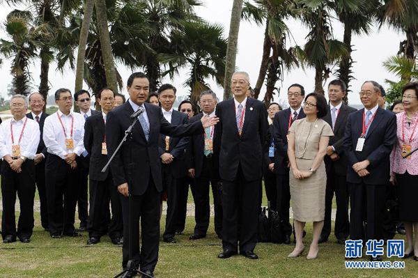 今天在這里,我還想跟大家講的是,在兩岸同胞的共同努力下,兩岸關系不僅經受了考驗,保持了正確方向,還迎來了更加廣闊的發展前景。下一步,我們愿抓住機遇,順應民心,全面鞏固深化兩岸關系的和平發展。而加強兩岸在經濟領域的各項合作仍是今年兩岸關系的優先和重點。我們應看到,兩岸經濟關系正在展現全方位合作的新態勢,與此同時,兩岸經濟合作的很多方面也開始由易入難。如何順利推進兩岸經濟合作,繼續實現兩岸互利共贏,不斷增進兩岸同胞的共同利益與福祉,是我們雙方都應當深入思考和面對的問題。我認為,一個重要和基本的著眼點是,我們應該進一步維護好、鞏固好,并且不斷深化兩岸雙方之間的政治互信。這樣做,我們才能為推進經濟合作,以及解決經濟領域的各種問題提供更堅實的保障,營造更有利的環境,獲得更穩固的民意支持,產生更為持續不斷的動力。希望包括各位在內的兩岸各界有識之士都能為此做出不懈努力。
