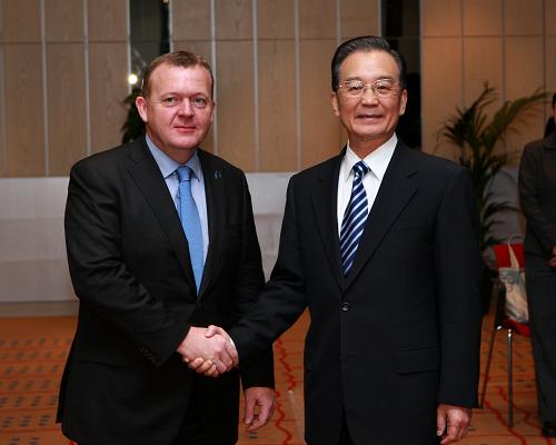 12月17日,中國國務(wù)院總理溫家寶在哥本哈根會見丹麥?zhǔn)紫嗬鼓律P氯A社記者 龐興雷 攝