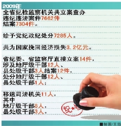 去年全省7285人受黨紀(jì)政紀(jì)處分,查處地廳級(jí)干部12人