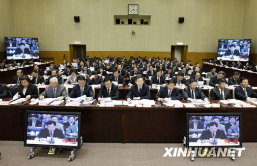 3月23日,國務院在北京召開第三次廉政工作會議,中共中央政治局常委、國務院總理溫家寶在會上發表講話。中共中央政治局常委、國務院副總理李克強、中共中央政治局常委、中央紀委書記賀國強等出席會議。新華社記者劉建生攝
