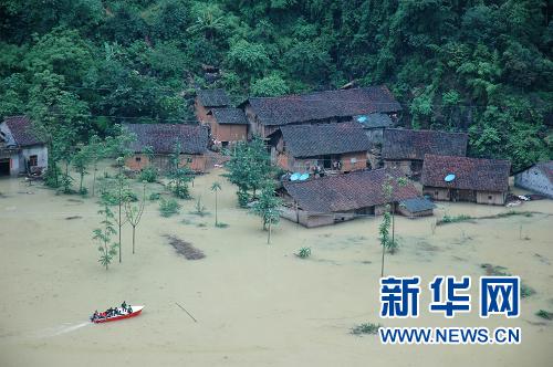 6月20日,受災(zāi)嚴重的南丹縣立坳村完全被水浸泡。6月17日以來,廣西南丹縣八圩瑤族鄉(xiāng)境內(nèi)普降大暴雨。災(zāi)情發(fā)生后,鄉(xiāng)黨委、政府第一時間緊急轉(zhuǎn)移和安置受災(zāi)群眾,確保群眾生活。南丹縣緊急調(diào)撥帳篷65頂、盒飯1200份、礦泉水100件、大米600斤、豬肉60斤、蔬菜200斤、食用油和食鹽等發(fā)放到受災(zāi)群眾手中,并安排人員24小時值班,確保通信暢通。新華社記者 盧哲攝