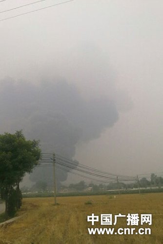 北京房山區石樓鎮一化工物流公司的倉庫今天早晨發生火災。據記者了解,目前火勢尚未得到完全控制。房山、豐臺、大興、石景山區的近百輛消防車已趕赴現場。同時,灑水作業車也出動進行支援。(中廣網記者谷一平)