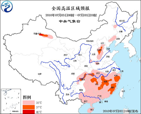 中央氣象臺7月3日06時繼續(xù)發(fā)布高溫藍色預警: