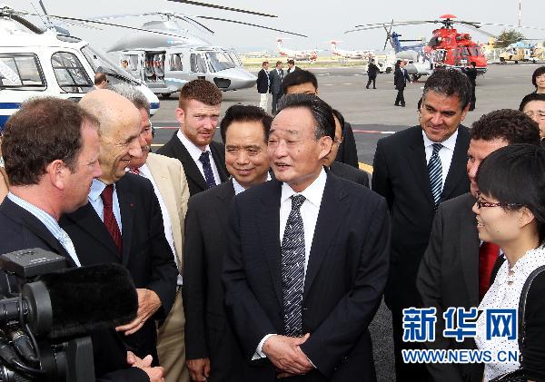 7月13日,正在法國進行正式友好訪問的全國人大常委會委員長吳邦國在馬賽參觀歐洲直升機公司。 新華社記者 鞠鵬 攝