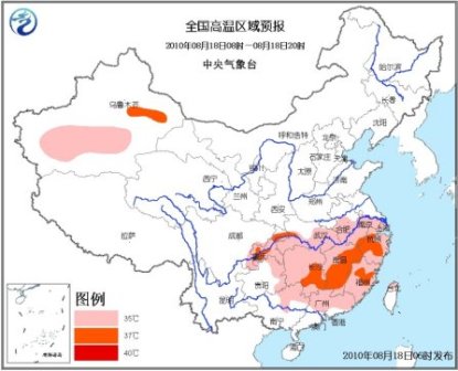 預(yù)計,今天白天,四川盆地東南部、重慶大部、湖北南部和東部、安徽中南部、江蘇南部、上海、浙江、江西、湖南、貴州東部、廣西東北部、廣東北部和東部、福建、臺灣北部等地有35~37℃的高溫天氣,其中重慶西南部和東北部、湖南東南部、江西中部、浙江中西部等地的部分地區(qū)氣溫可達(dá)38℃。
