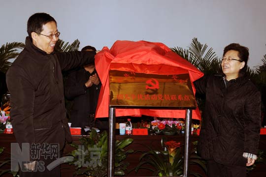 11月19日上午,中央文獻研究室副主任、機關黨委書記董宏(左)和北京市委常委、組織部長呂錫文(右)共同為“中共中央文獻研究室創先爭優活動黨員聯系點”揭牌。新華社記者劉浦泉攝