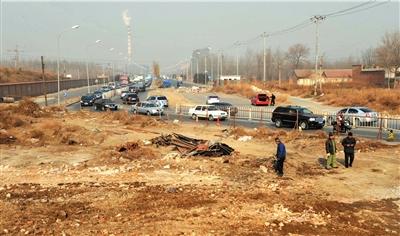②工人們搭鋼架,準備道路施工。 本報記者胡雪柏攝