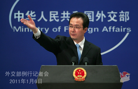 2011年1月6日,外交部發(fā)言人洪磊主持例行記者會。