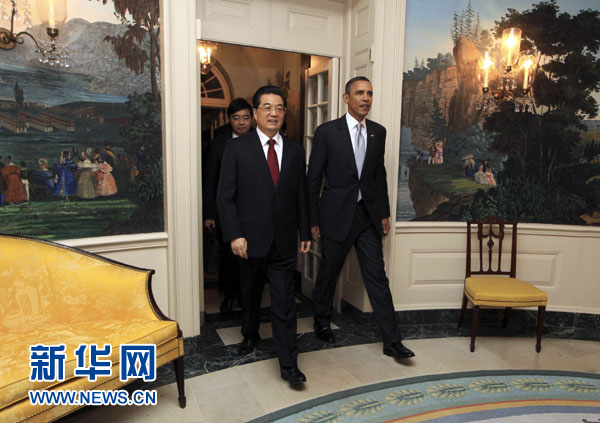 奧巴馬對胡錦濤來美國進行國事訪問表示熱烈歡迎。兩國元首積極評價中美關系取得的進展,表示愿意通過這次訪問進一步推動積極合作全面的中美關系向前發展。