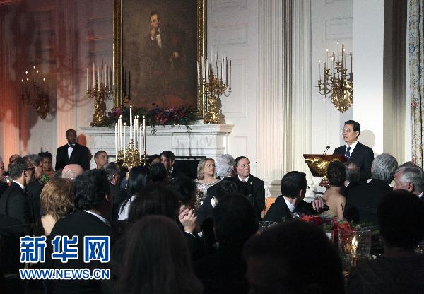 1月19日,中國國家主席胡錦濤在白宮出席美國總統奧巴馬舉行的歡迎宴會。 新華社記者蘭紅光攝