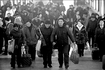昨天迎來(lái)返程客流小高峰,北京站出口人頭攢動(dòng)。本報(bào)記者朱嘉磊攝