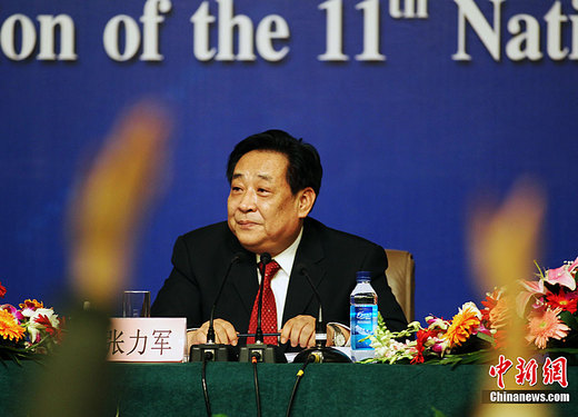 3月12日上午,十一屆全國(guó)人大四次會(huì)議舉行“加強(qiáng)環(huán)境保護(hù)”記者會(huì)。圖為環(huán)境保護(hù)部副部長(zhǎng)張力軍回答記者提問(wèn)。中新社發(fā) 王中舉 攝