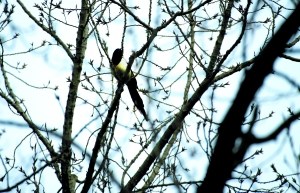 昨日,光華路附近,一只喜鵲站在高高的樹梢上,似乎在享受著春日暖陽。 晨報記者 柴春霞/攝