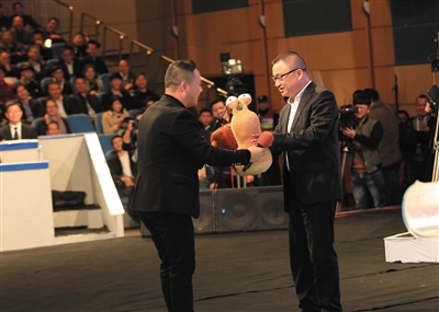 2015年12月3日,浙江溫州電視問政現場,市民代表送給官員一只蝸牛玩偶,希望該區“蝸牛工程”能夠加快進度。