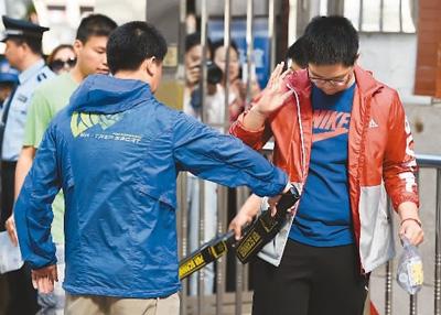 “這是我參加監考這么多年來,最嚴格的一次高考監考。”在江西南昌二中,一名監考老師表示。每個考場門口,都有監考老師拿著金屬檢測儀對考生進行一絲不茍的安檢,從上到下、從前到后,身上的每一處都要用檢測儀掃描一遍。除了準考證和身份證,一支筆芯、一片紙片都不能帶進考場。