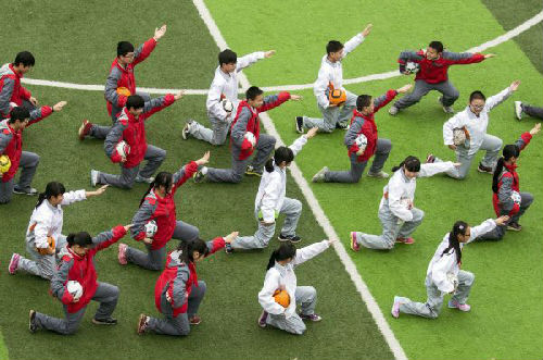資料圖片:中國(guó)學(xué)生在上足球課。