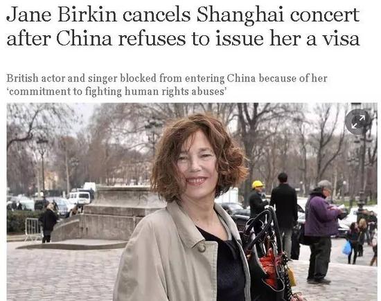 然而,《衛報》等媒體卻將此事歸咎于中國害怕長期關注“人權”問題的Jane Birkin令中國尷尬。