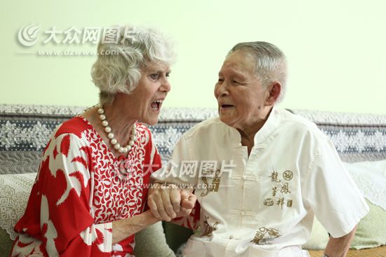 回憶起當年濰縣集中營的經(jīng)歷,瑪麗和王成漢激動地握起了手。(亓翔 攝)