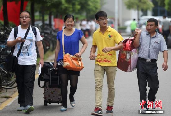 資料圖:新生在家長的陪伴下走進校園辦理入學手續。中新社發 泱波 攝