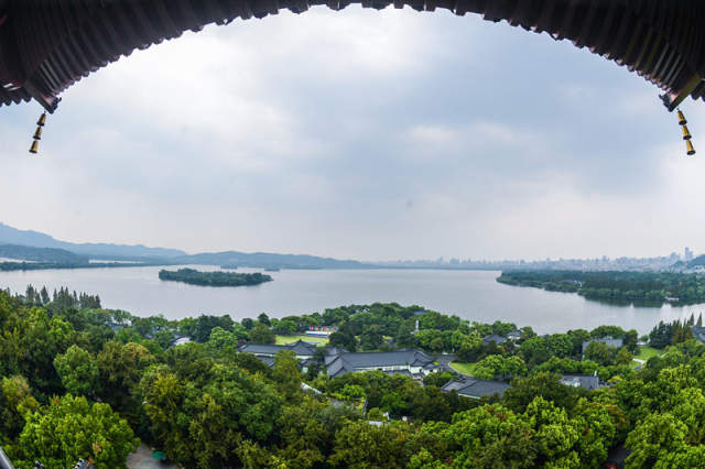 圖說:9月4日,西湖風景區雷峰塔上俯瞰西湖風景。新華社記者 徐昱 攝