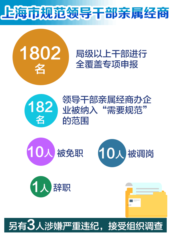 規范領導干部配偶、子女違規經商,整治領導干部“身邊人腐敗”,群眾有期待,中央也早就盯上了。具體怎么做?去年2月,中央深改組第十次會議將試點首次選定在上海。試行一年來,上海嚴查領導干部親屬經商辦企業,共甄別出165名市管干部需要規范,目前已全部完成規范工作。其中,112人親屬退出經商辦企業活動,10人調整現任職務,10人免職退休,1人辭去現任職務,另有3人被立案調查。