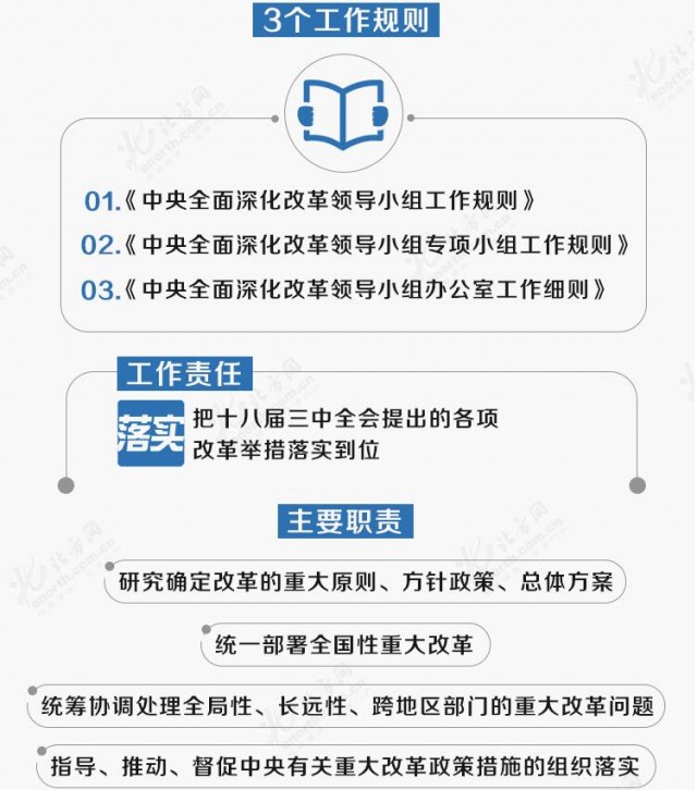 中央全面深化改革領(lǐng)導(dǎo)小組,這是中央深改組的全稱。2013年12月30日,十八屆三中全會(huì)提出全面深化改革后僅一個(gè)多月,該小組成立,負(fù)責(zé)改革的總體設(shè)計(jì)、統(tǒng)籌協(xié)調(diào)、整體推進(jìn)、督促落實(shí)。過去1000天,深改組在民生改革、經(jīng)濟(jì)結(jié)構(gòu)調(diào)整、從嚴(yán)治黨、依法治國、生態(tài)治理等方面改革力度最大、成效最顯著。