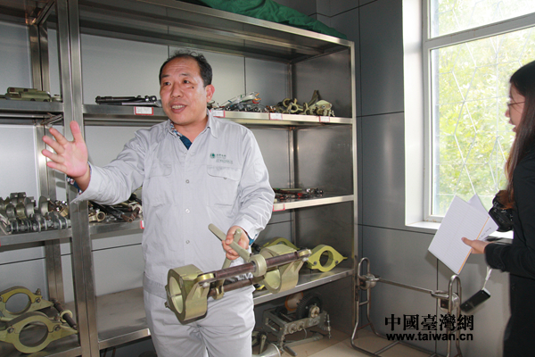 趙文武手拿工作工具,向記者講述工作過程。(中國臺灣網(wǎng) 李帥 攝)