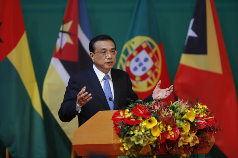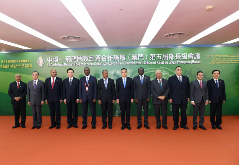 國務(wù)院總理李克強(qiáng)11日上午在澳門出席中國-葡語國家經(jīng)貿(mào)合作論壇第五屆部長級會議開幕式并發(fā)表主旨演講。佛得角總理席爾瓦、幾內(nèi)亞比紹總理巴西羅·賈、莫桑比克總理多羅薩里奧、葡萄牙總理科斯塔以及安哥拉、巴西、東帝汶等國政府代表與會并講話。