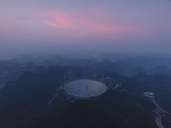 FAST位于貴州省平塘縣,是目前世界上口徑最大、最具威力的單天線射電望遠鏡,與號稱“地面最大的機器”的德國波恩100米望遠鏡相比,靈敏度提高約10倍;與排在阿波羅登月之前、被評為人類20世紀(jì)十大工程之首的美國阿雷西博305米望遠鏡相比,其綜合性能提高約10倍。