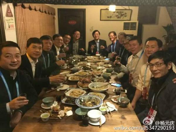 11月16日20時38分,新浪董事長兼CEO曹國偉在其個人微博發布了一張多位互聯網大佬在烏鎮聚餐的照片。照片同時配文:“再聚烏鎮。Moto Z拍攝,應@楊元慶要求發一個。”