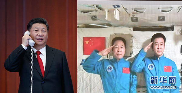 對話的一方是中國的國家主席習近平,而另一方則是遠在太空之上的兩名航天員。