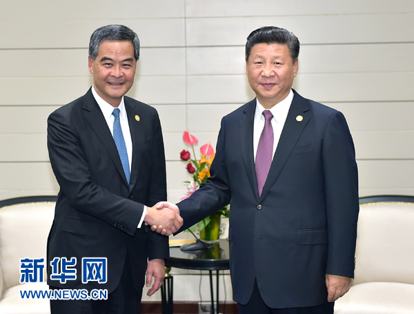 國家主席習近平11月20日下午在秘魯首都利馬會見了前來出席亞太經合組織第二十四次領導人非正式會議的香港特別行政區行政長官梁振英。