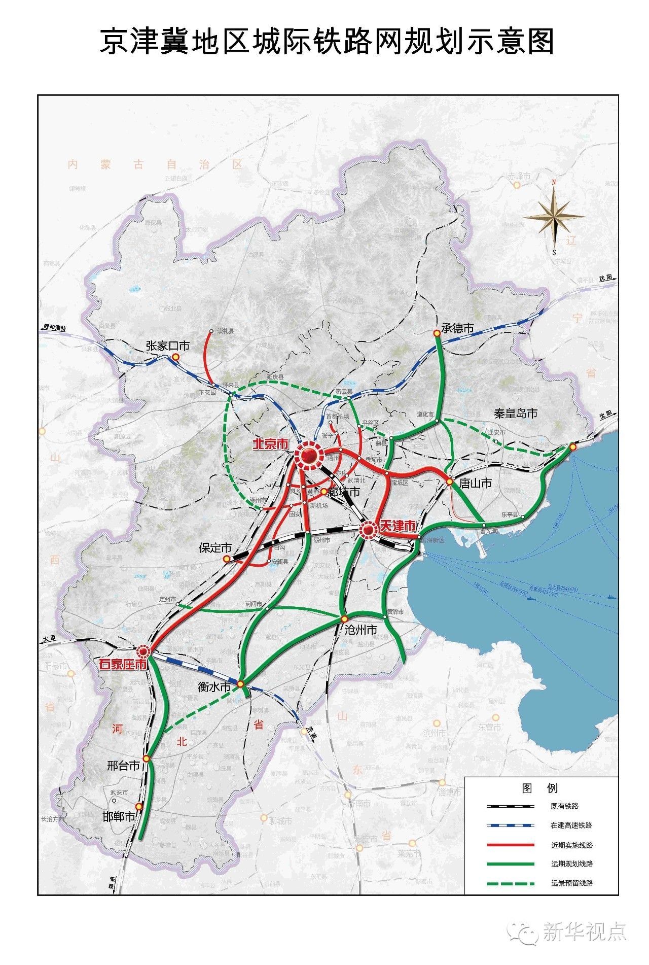 從《中長期鐵路網規劃圖》上看,京沈客專、京張高鐵、石濟客專等一批高速鐵路將在這片土地上快速興起。京、津、石“三角結構”將進一步演變成多節點、網格狀的區域交通網絡。